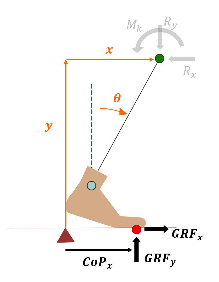 Free-body diagram of the prosthetic foot and lower leg during a step