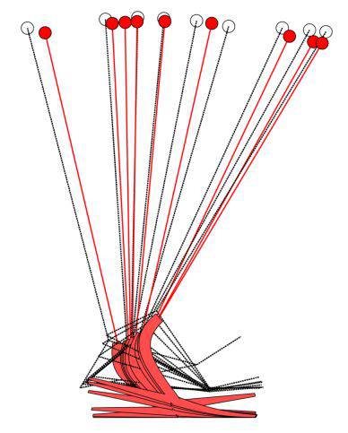 Predicted lower leg trajectory in red overlaid on the target trajectory in black