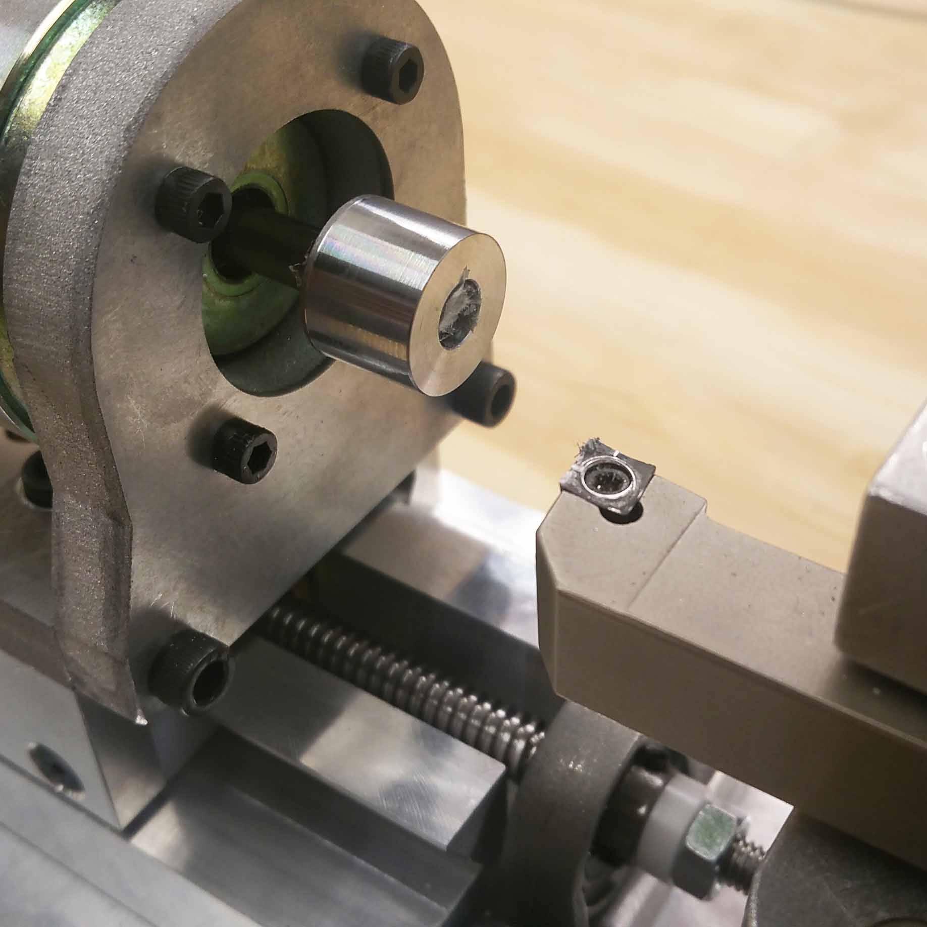 Here after is the T-based lathe updated with an improved spindle assembly with a chuck.