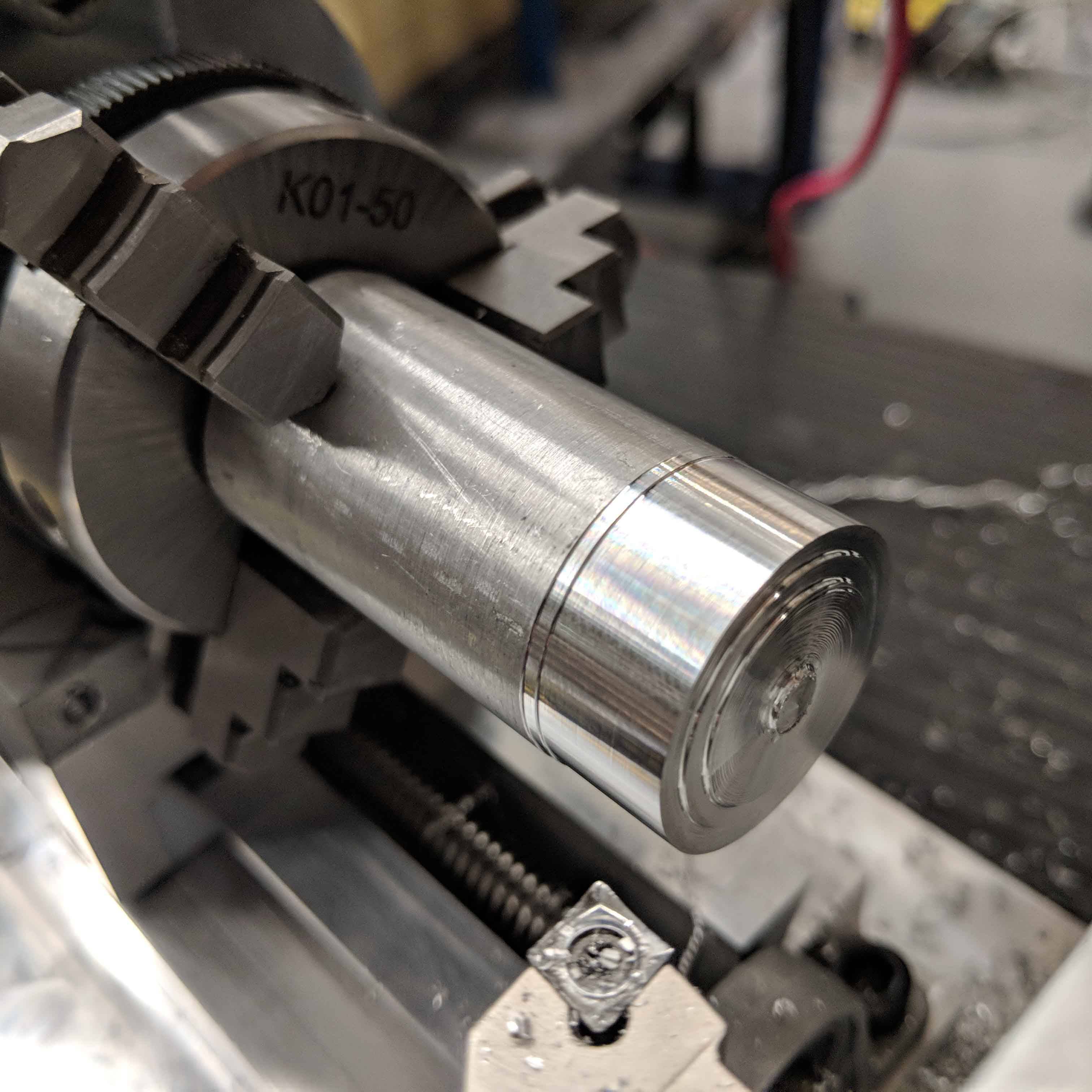 The T-based lathe performed as expected and this project was valuable in teaching me a deterministic and rigorous design process that includes: defining the functional requirements, concept generation, thorough analysis with a clear statement of the assumptions, testing and reflecting on the model. However, the current spindle assembly would need to be replaced by an electric motor running an actual spindle with a chuck or collet to allow us to not only face the part but also turn the diameter.