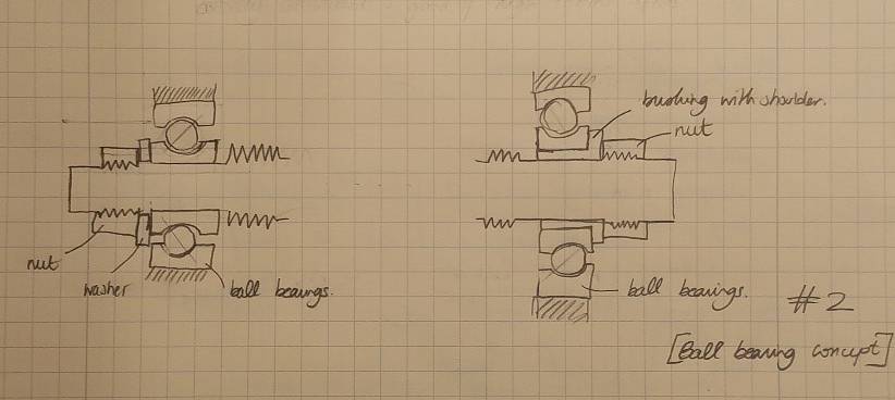 The leadscrew is designed to be used for actuating the LMS for a desktop T-based lathe. I explored different concepts that would be suitable for this application considering different bearing layouts, leadscrew size, and materials. After considering, bushing, thrust bearings and ball bearings concepts with different layouts, I settled on a ball bearing concept with a back to back configuration (see sketch on the right)